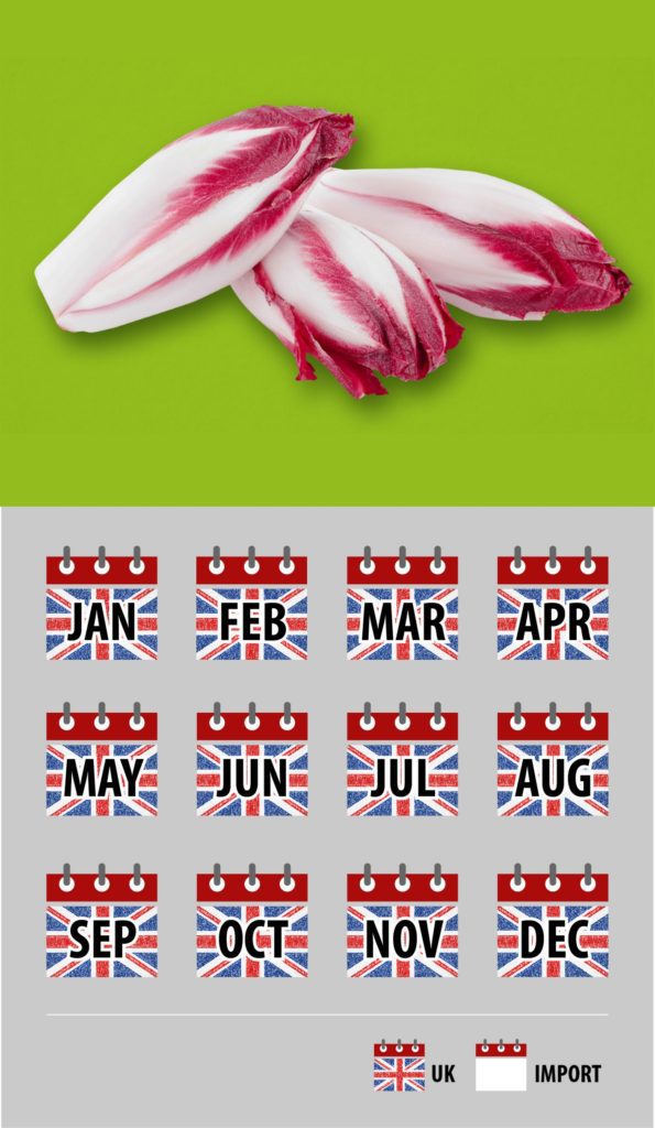 Red Chicory is available locally, from our own Holbeach site, all through the year.
